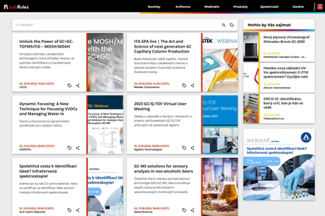 5 webinářů: GC×GC-TOFMS/FID & MOSH/MOAH, Vývoj a výzvy GC kolon, Ovzduší a fokusace VVOCs, GC/Q-TOF Virtual User Meeting, FTIR pro identifikaci látek v laboratořích ALS ČR.
