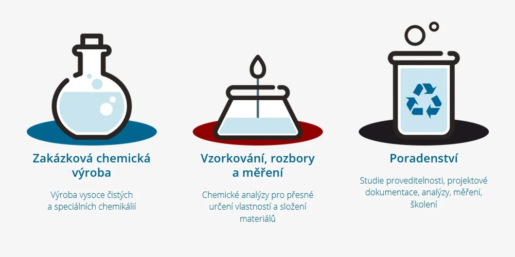 Rozbory a analýzy vysoce čistých anorganických chemikálií (stanovení obsahu základní látky nebo vody stanovení kovových i nekovových nečistot (klasické analytické metody + výhledově ICP/MS).