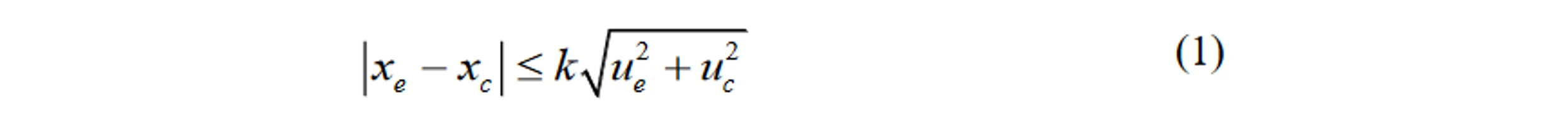 kde k je faktor rozšíření, u𝑒 standardní nejistota experimentálně stanovené hodnoty analýzy CRM v laboratoři x𝑒 a u𝑐 standardní nejistota certifikované hodnoty CRM x𝑐. Hodnota k závisí na předpokládaném rozdělení pravděpodobnosti (předpokládáme normální) a požadované hladině spolehlivosti (nejčastěji k= 2, což odpovídá konfidenční úrovni přibližně 95 %). Pro použití vztahu (1) je potřeba převést v certifikátu obvykle uváděnou rozšířenou nejistotu U𝑐 certifikované hodnoty na standardní nejistotu dělením faktorem rozšíření k. Způsob hodnocení s využitím vztahu (1) je demonstrován na praktickém příkladu uvedeném na konci tohoto metodického listu. Další praktickou demonstraci tohoto přístupu, spolu s podrobným návodem jak odvodit hodnoty u𝑒 a u𝑐, uvádí odkaz {1} a materiál Application note 1 *Comparison of a measurement result with the certified value *dostupný i v českém překladu {3} na webových stránkách Společného výzkumného střediska Evropské komise v Geelu věnovaných certifikovaným referenčním materiálům na adrese https://crm.jrc.ec.europa.eu/ v oddíle User support/application notes.