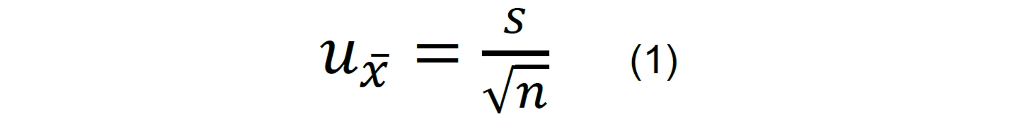 Kalibrujeme pipetu pomocí 12 měření, ze kterých vypočteme aritmetický průměr a směrodatnou odchylku. Rovnici (1) použijeme k odhadu standardní nejistoty průměru. Pokud pipetu použijeme k odměření jednoho alikvotu, rovnici (1) neaplikujeme a standardní nejistota příslušející náhodným změnám jednoho měření je rovna směrodatné odchylce 𝑠.